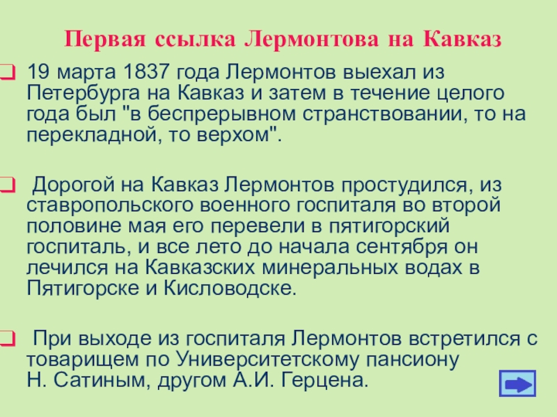 Слайд 11Первая ссылка Лермонтова на Кавказ