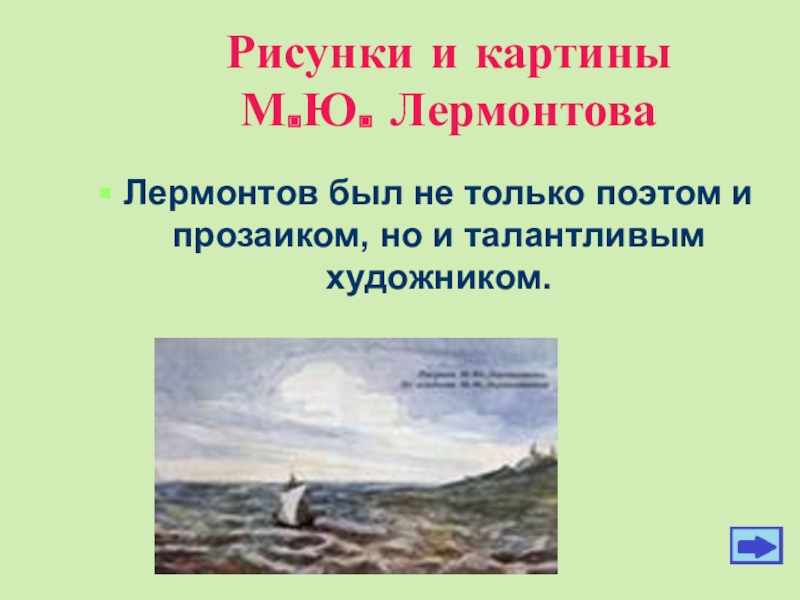 Михаил Юрьевич Лермонтов— русский поэт, прозаик, драматург, художник, офицер.