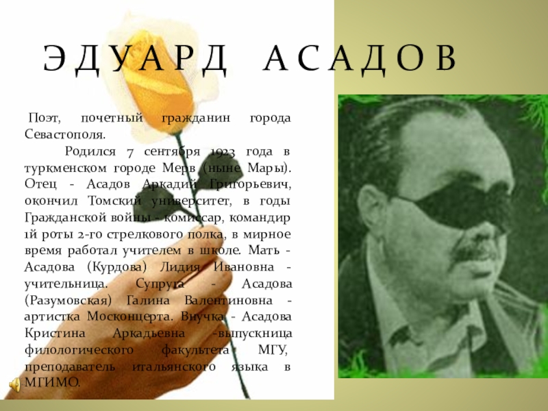Слайд 1 Поэт, почетный гражданин города Севастополя.