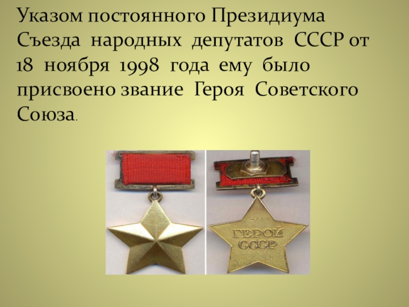 Слайд 17Указом постоянного Президиума Съезда народных депутатов СССР от 18 ноября 1998