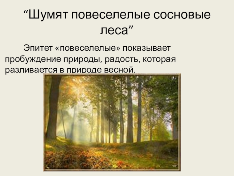 Слайд 20В стихотворении «Зелёный шум» Некрасов олицетворяет два природных образа – образ