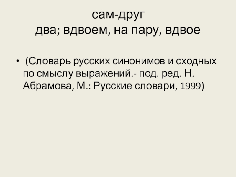 Слайд 7сам-друг два; вдвоем, на пару, вдвое