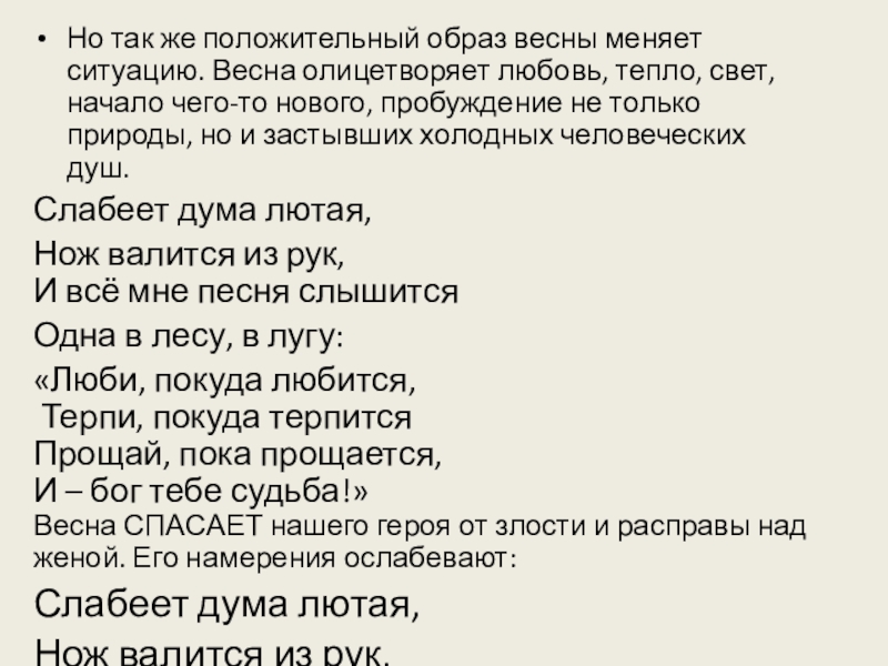 Слайд 22Но так же положительный образ весны меняет ситуацию. Весна олицетворяет любовь,
