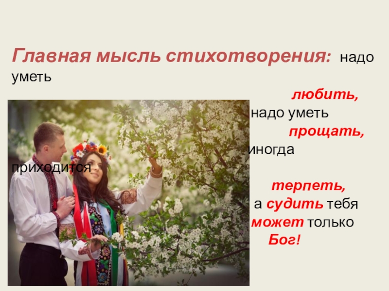 Нужно уметь любить, терпеть и - самое главное - прощать, а остальное - рассудит Бог!