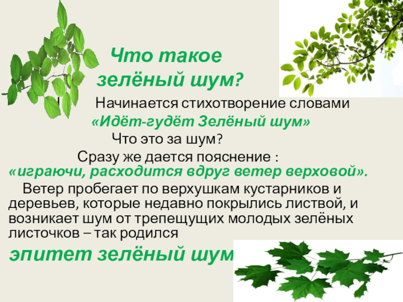 Слайд 4 Это и есть тот самый Зеленый Шум, Символ весны, он