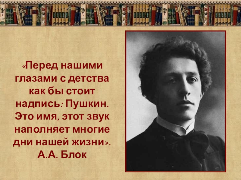 «Перед нашими глазами с детства как бы стоит надпись: Пушкин. Это имя, этот звук наполняет многие дни