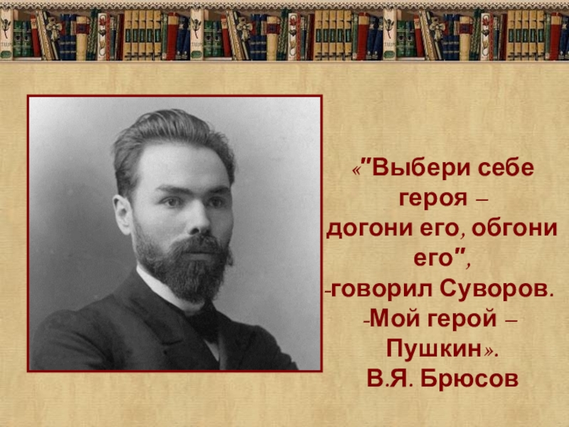 «″Выбери себе героя – догони его, обгони его″, говорил Суворов. Мой герой – Пушкин».В.Я. Брюсов