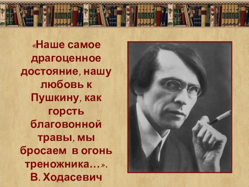 «Наше самое драгоценное достояние, нашу любовь к Пушкину, как горсть благовонной травы, мы бросаем в огонь треножника…».