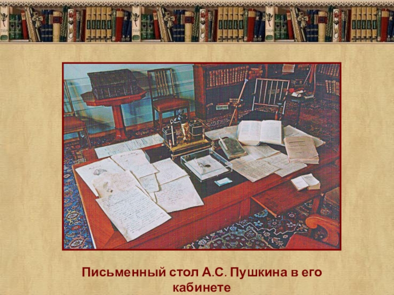 Слайд 11Письменный стол А.С. Пушкина в его кабинете