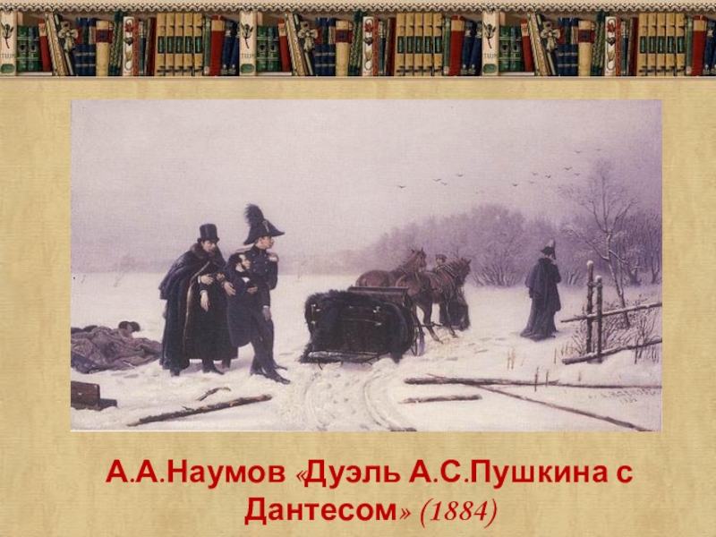 Слайд 8А.А.Наумов «Дуэль А.С.Пушкина с Дантесом» (1884)