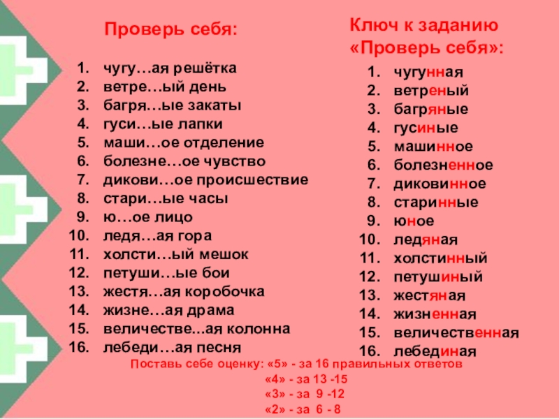 Поставь себе оценку: «5» - за 16 правильных ответов