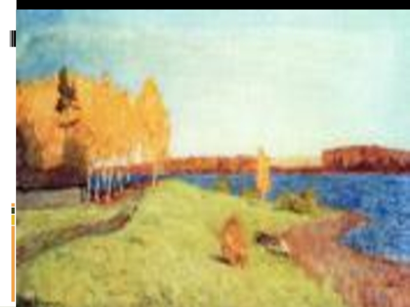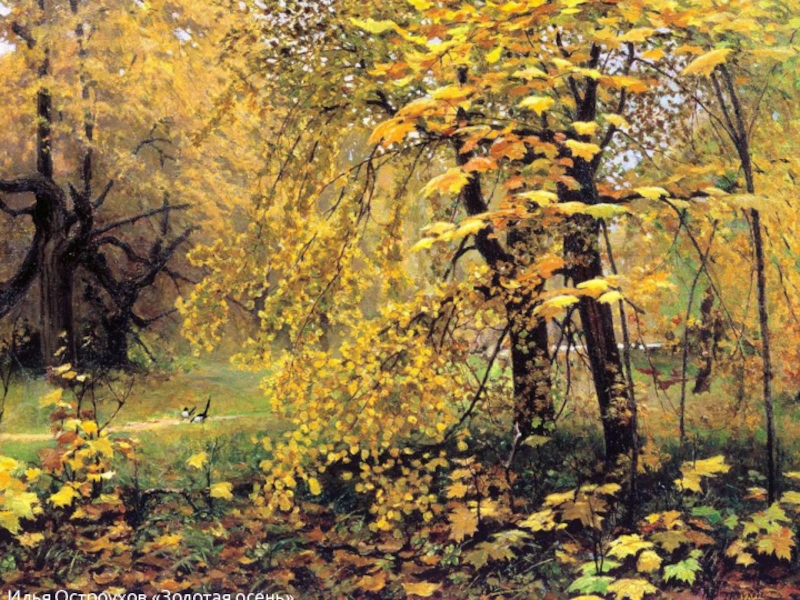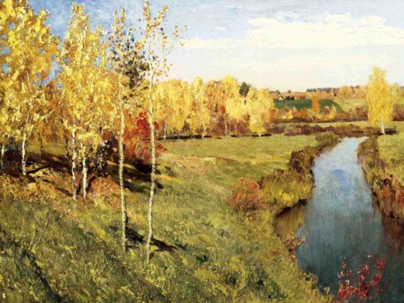 Это пора увядания природы. Уже холодна вода в прозрачной синей реке. Уже наполняет лёгкие по-осеннему студёный воздух. Уже пожухла и покоричневела трава. Но картину Левитана нельзя назвать грустной, наоборот, это одно из самых светлых и радостных его произведений. Оно не наводит зрителя на тоскливые мысли о неизбежности зимы, хотя недолговечность золотого чуда кажется почти физически осязаемой.
