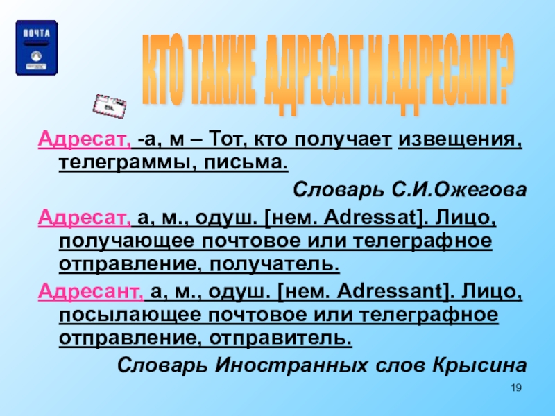 КТО ТАКИЕ АДРЕСАТ И АДРЕСАНТ?