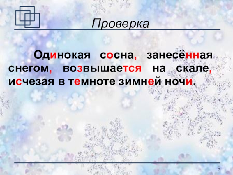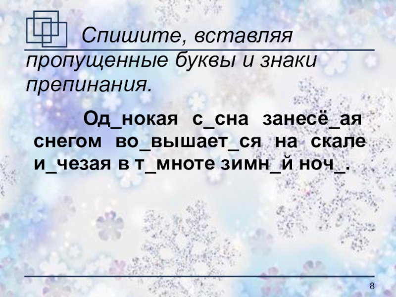Од_нокая с_сна занесё_ая снегом во_вышает_ся на скале и_чезая в т_мноте зимн_й ноч_.