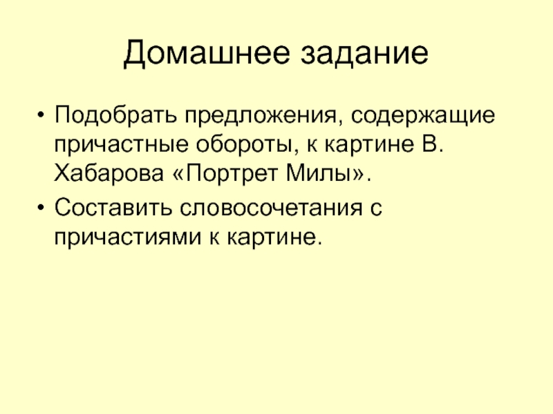 Подобрать предложения, содержащие причастные обороты, к картине В. Хабарова «Портрет