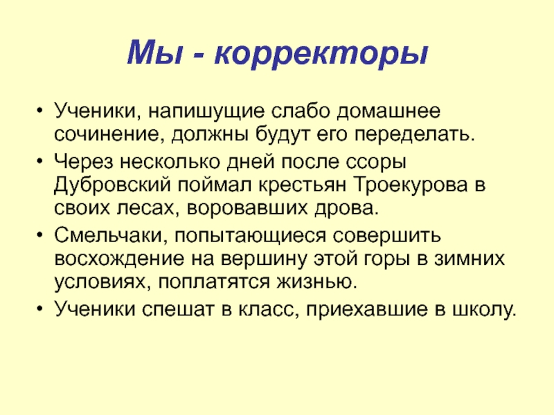 Ученики, написавшие (неправильное употребление времени) слабо домашнее сочинение, должны