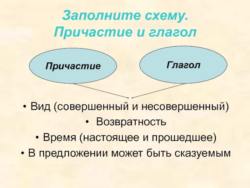 Причастия бывают сов., несов. в., наст. вр., прош. вр., буд. вр.