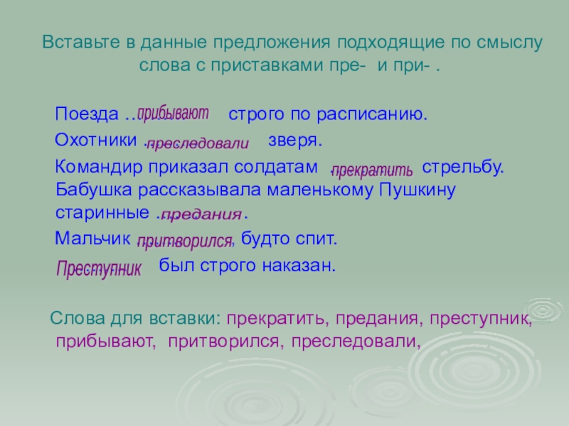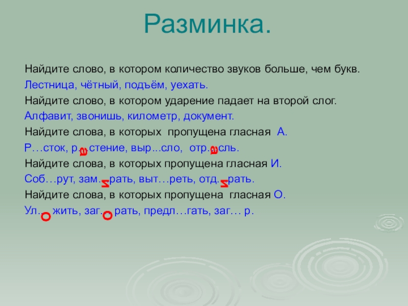 Ул... жить, заг… рать, предл…гать, заг… р.