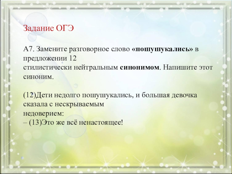 А7. Замените разговорное слово «пошушукались» в предложении 12