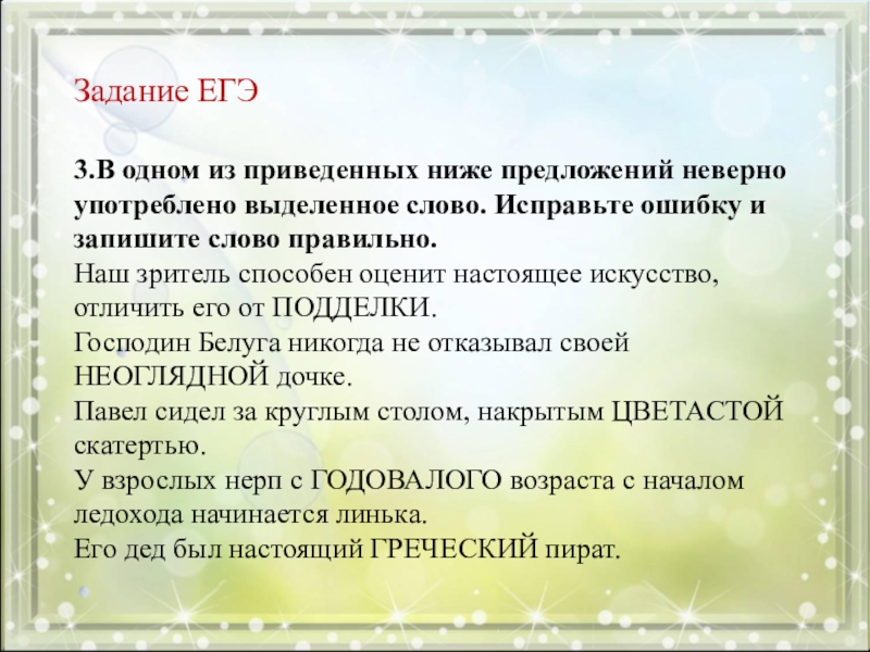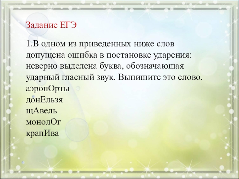 1.В одном из приведенных ниже слов допущена ошибка в постановке