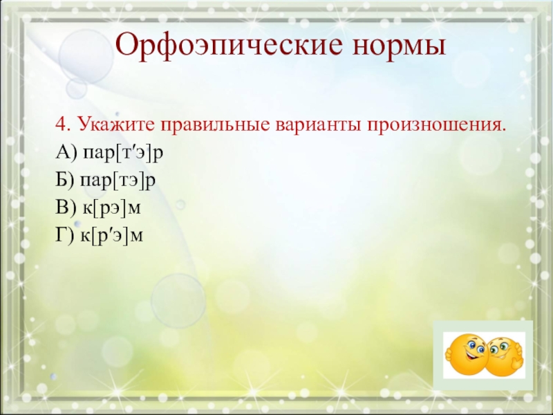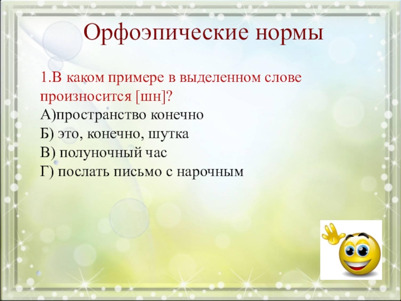 Например: национализм ! неправ. национали[з׳]м; будущее ! неправ. будующее; бытие ! не рек. бытиё.