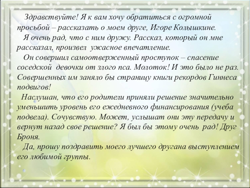 Слайд 27 Здравствуйте! Я к вам хочу обратиться с огромной просьбой