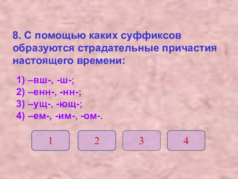 8. С помощью каких суффиксов образуются страдательные причастия настоящего времени: