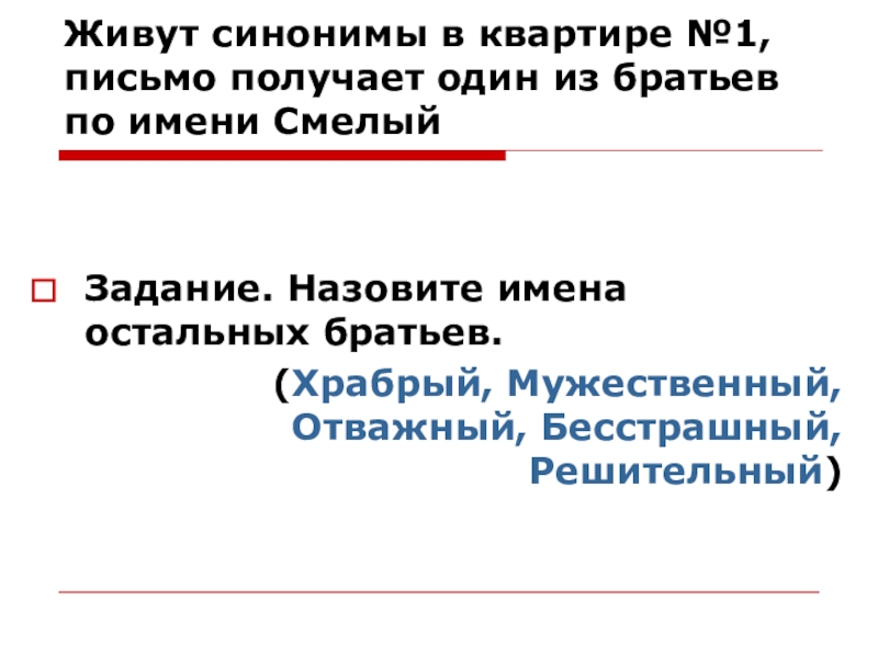 (Храбрый, Мужественный, Отважный, Бесстрашный, Решительный)
