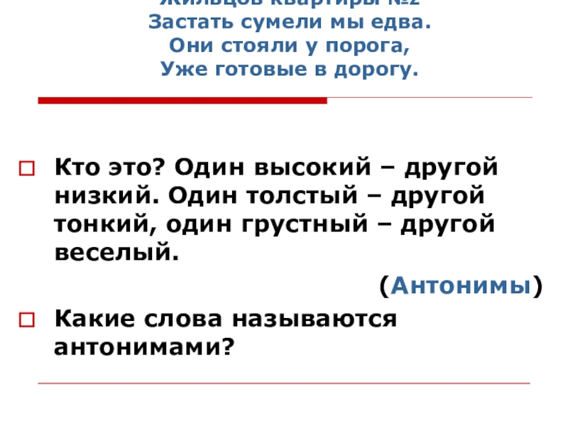 Кто это? Один высокий – другой низкий. Один толстый – другой тонкий, один грустный – другой веселый.