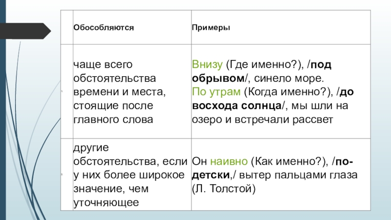 характеризуя основное (выраженное глаголом в личной форме или инфинитивом).
