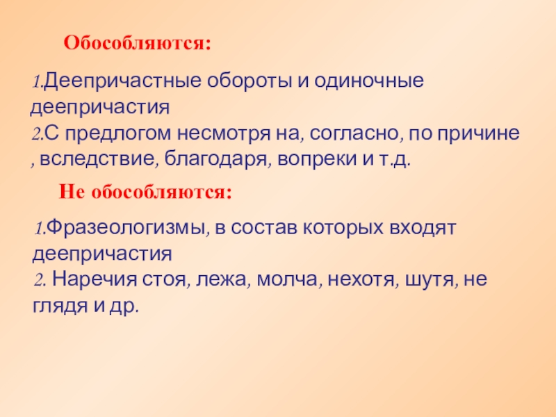 1.Фразеологизмы, в состав которых входят деепричастия