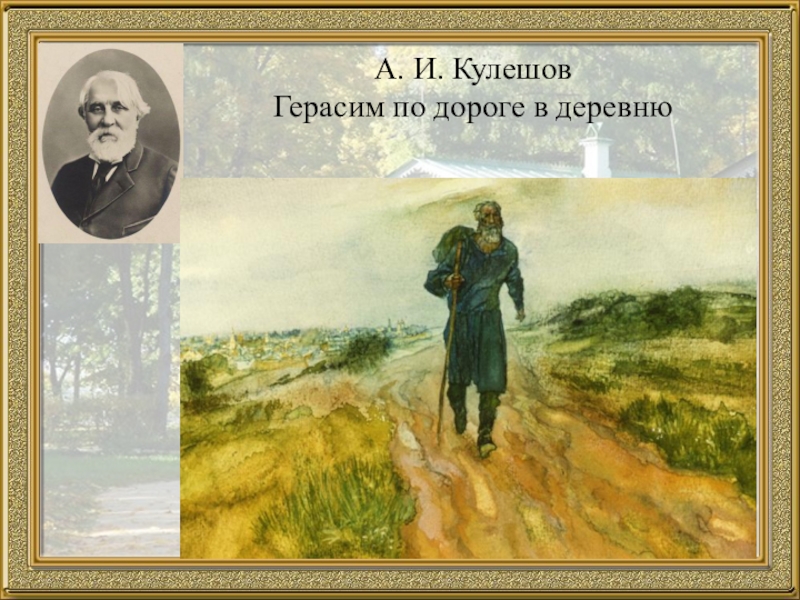 Слайд 12А. И. Кулешов Герасим по дороге в деревню