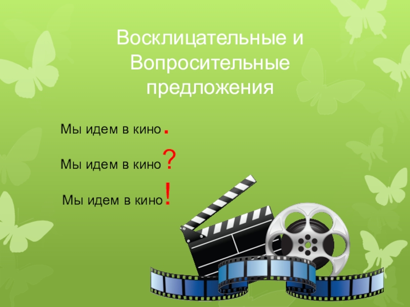 Восклицательные и Вопросительные предложенияМы идем в кино.Мы идем в кино?Мы идем в кино!