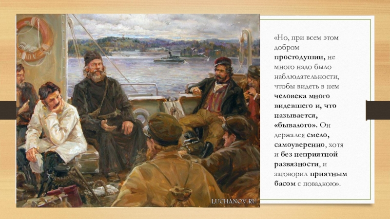 — Да, — говорю, — я в лошади красоту понимаю. А он как вскочит и хотел меня в ухо ударить.— Разве лошадь, — говорит, — краса природы совершенство?»