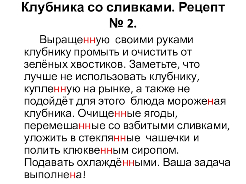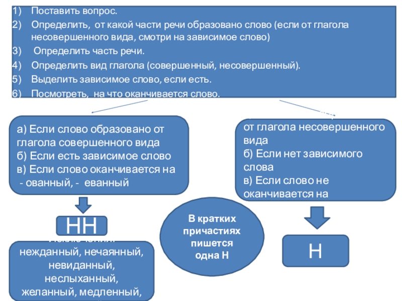 Исключения: нежданный, нечаянный, невиданный, неслыханный, желанный, медленный, раненый.