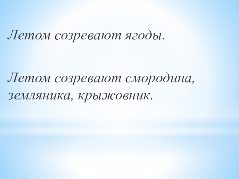 Летом созревают ягоды.Летом созревают смородина, земляника, крыжовник.
