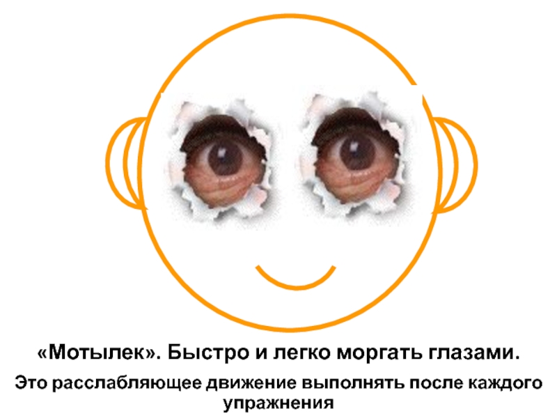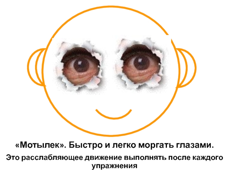 Слайд 17«Мотылек». Быстро и легко моргать глазами.