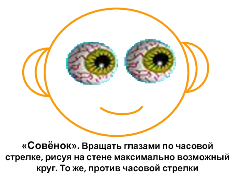 Слайд 16«Совёнок». Вращать глазами по часовой стрелке, рисуя на стене максимально возможный