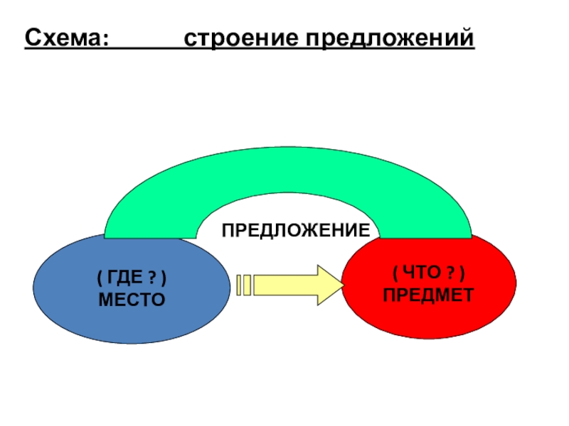Схема: строение предложений( ГДЕ ? )МЕСТО( ЧТО ? )ПРЕДМЕТ