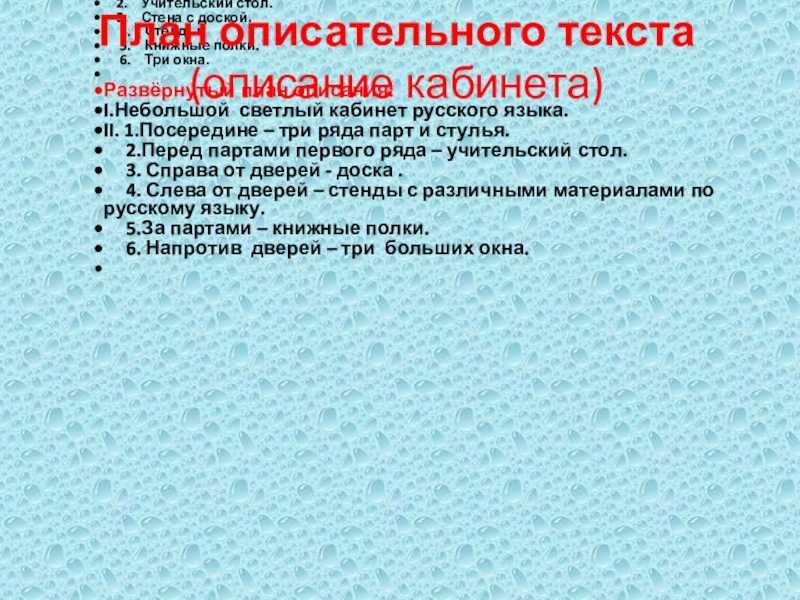 Слайд 6 План описательного текста (описание кабинета)