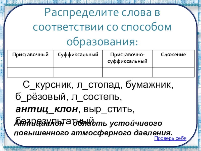 Антициклон – область устойчивого повышенного атмосферного давления.