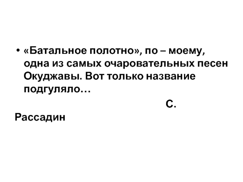 Слайд 13«Батальное полотно», по – моему, одна из самых очаровательных песен Окуджавы.