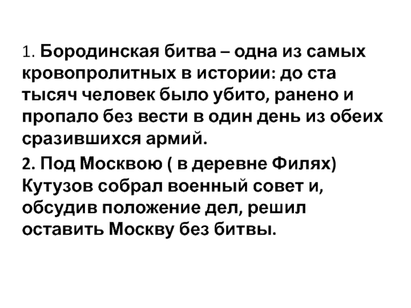 Слайд 71. Бородинская битва – одна из самых кровопролитных в истории: до