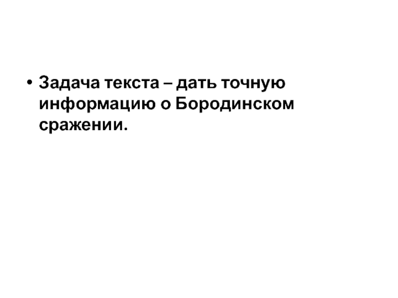 Слайд 9Задача текста – дать точную информацию о Бородинском сражении.