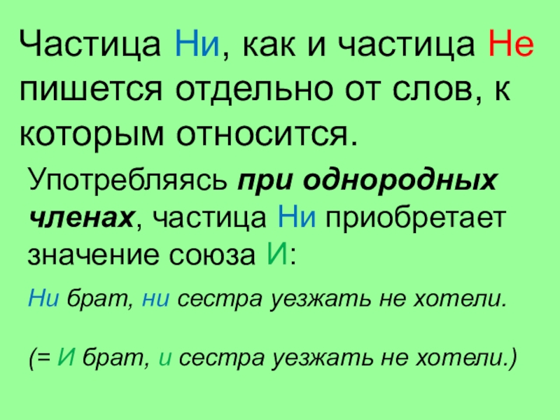 Употребляясь при однородных членах, частица Ни приобретает значение союза И: