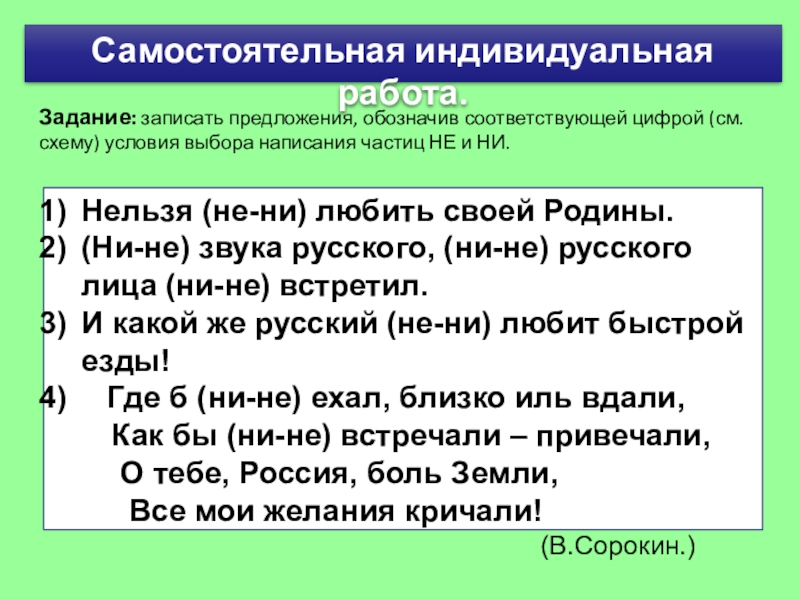 Нельзя (не-ни) любить своей Родины.
