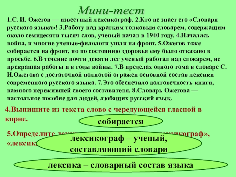 5.Определите лексическое значение слов «лексикограф», «лексика».
