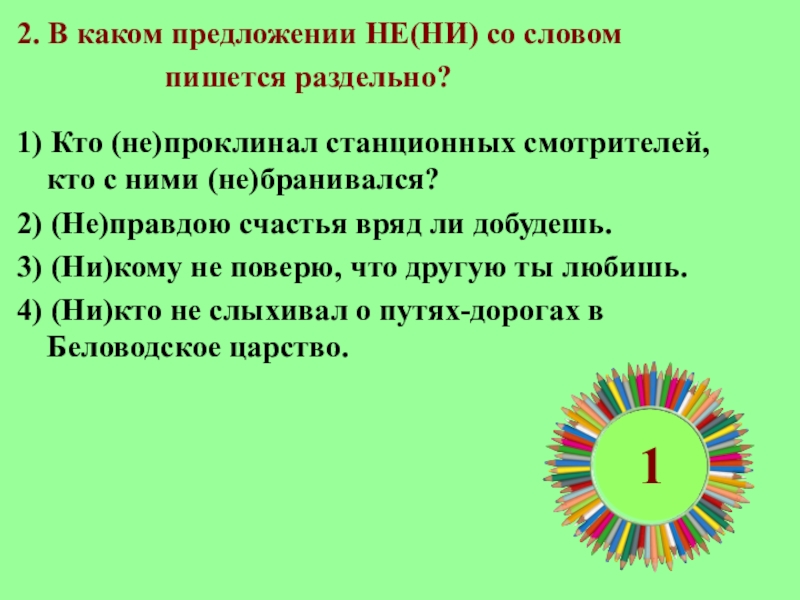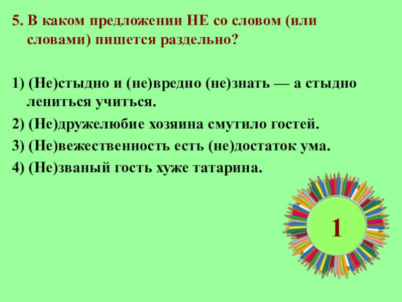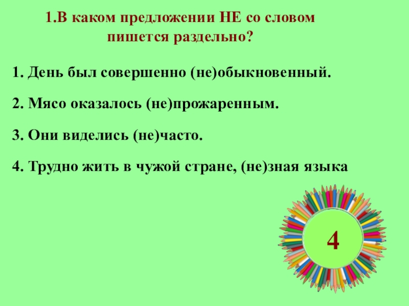 1.В каком предложении НЕ со словом пишется раздельно?