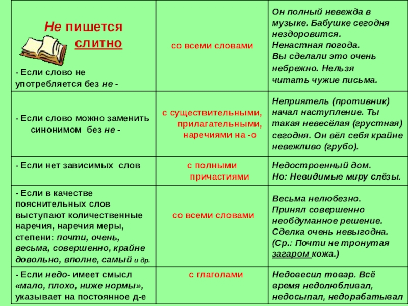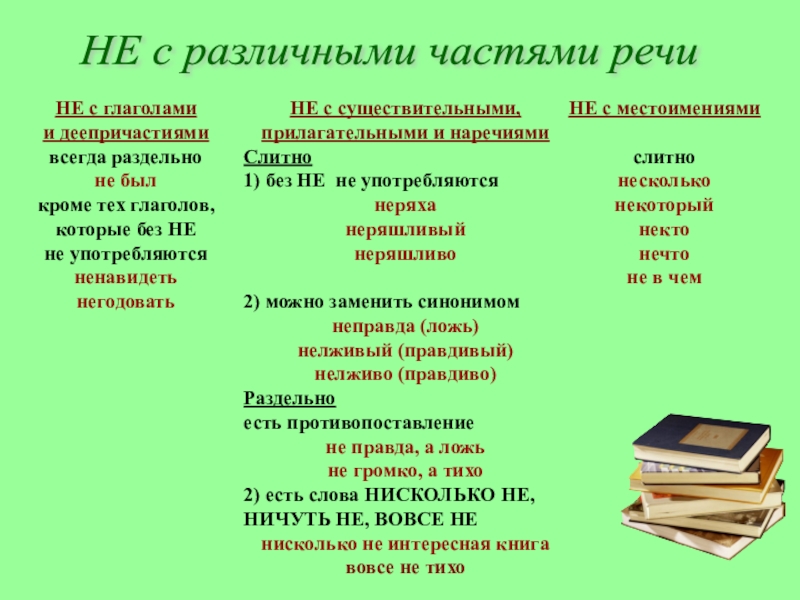НЕ с существительными, прилагательными и наречиями