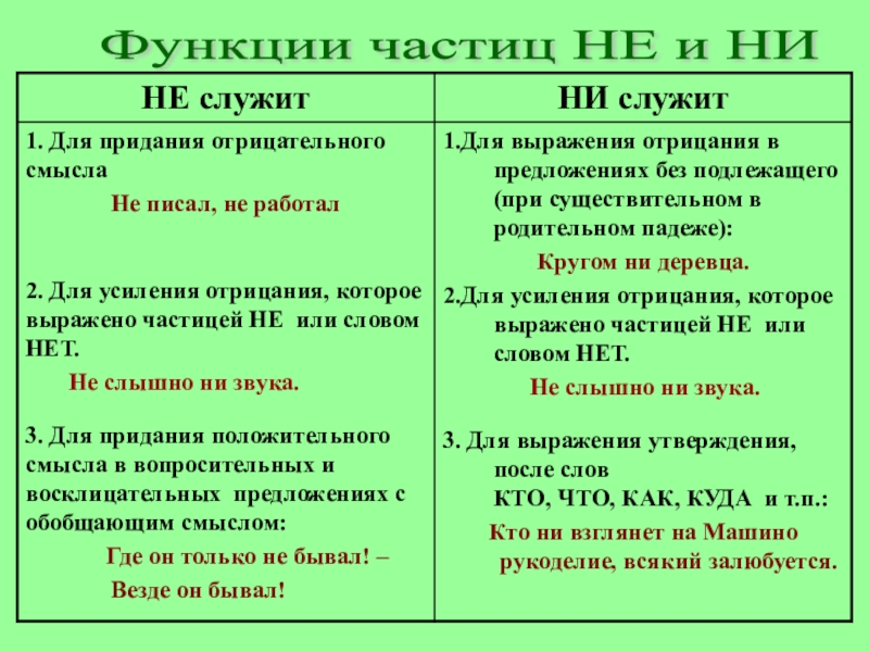 Усиливать отрицание – основная функция частицы Ни!